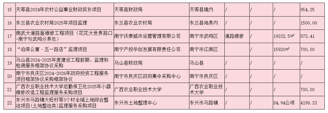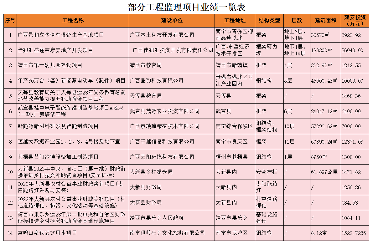部分工程监理业绩一览表